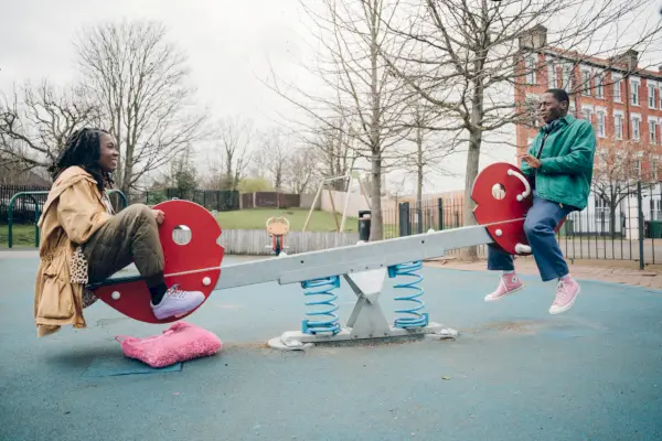 Vivian Oparah och David Jonsson in Rye Lane. Chris Harris