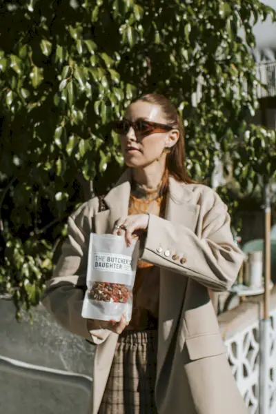 Nästa månad lanserar Port sin senaste kollektion med Hyr banan (ett partnerskap som började 2020), och hon använde februaris New York Fashion Week som ett sätt att kickstarta sitt passionsprojekt med Slaktarens dotter (a bi-kust vegetarisk restaurang ) och Fjärde mars (en ideell organisation som förespråkar att återinföra ett federalt förbud mot anfallsvapen). Jag har älskat The Butcher's Daughter för alltid, och vi har funderat på hur vi skulle kunna arbeta tillsammans på ett meningsfullt sätt som hjälper våra samhällen, berättar Port för Startracker om hur de landade på två snacks på språng, med en portion av intäkterna som donerades till fjärde mars.