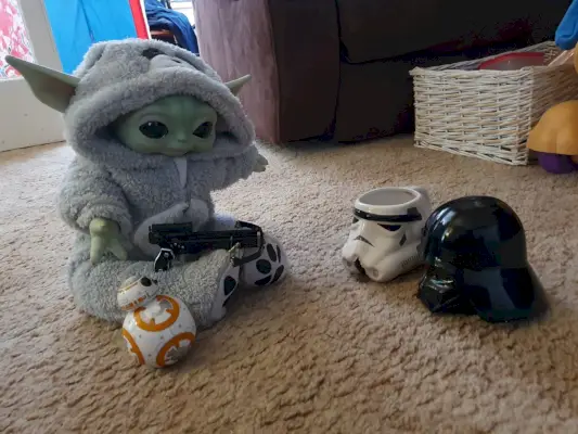 Idag pratar Everharts berättelser om den största Baby Yoda Facebook-fansidan (mer än 117 000 medlemmar). Hon har fyra dockor: Hux, Jyn, Jaina och Ezra, alla uppkallade efter karaktärer från Star Wars filmer och Expanded Universe. I fotoberättelser skapade av Everhart får dockorna alla möjliga noggrant framställda sken, från att stjäla en låda Krispy Kreme-munkar till att skjuta en pumpa över sin mammas bakgård via en provisorisk slangbella. Jag tänker på de saker som mina barn hade gjort när de var yngre, sa hon. Och de har gjort några ganska galna saker.