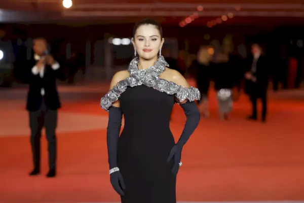 Hösten 2023 hade Gomez börjat arbeta med stylisten Erin Walsh, som gjorde ett stort intryck när hon stylade sångerskan i denna scharlakansröda klänning av Oscar de la Renta. Den skräddarsydda designen inkluderade en korsettkropp och en blommig franskjol som var handbroderad med tusentals pärlor för en högglans finish. Röda Jimmy Choo-sandaler och ett sortiment av Pasquale Brunis trädgårdsinspirerade vitguld och diamantsmycken kompletterade utseendet perfekt.