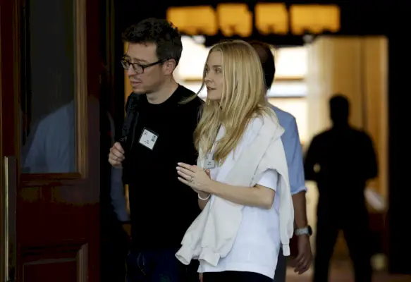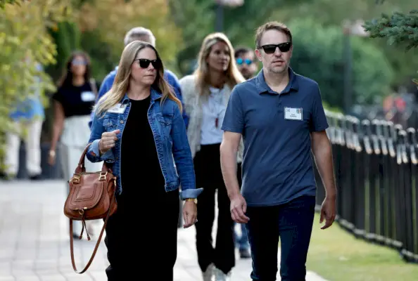 Tidigare Meta COO Sheryl Sandberg och hennes man, Tom Bernthal, anländer till Allen & Company Sun Valley Conference den 9 juli 2024.Kevork Djansezian/Getty Images